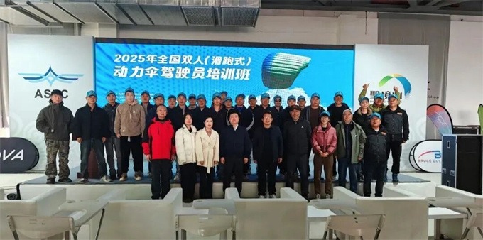 11月24日,2025年全国双人(滑跑式)动力伞驾驶员培训班在东宝区圣境山滑翔基地开班。